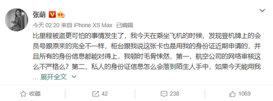網(wǎng)易娛樂9月20日?qǐng)?bào)道 9月20日凌晨,張萌發(fā)文透露自己身份信息被盜用,有陌生人用她的身份信息辦了一張航空公司會(huì)員卡。并生氣表示這是比里程被盜更可怕的事情,“第一,航空公司的網(wǎng)絡(luò)審核這么不嚴(yán)格么?第二,私人的身份證信息怎么會(huì)落到陌生人手中,如果今天能用我的名義辦一張積分卡,那么明天是不是就可以辦銀行卡,辦貸款了!”同時(shí)向網(wǎng)友求助該怎么辦。