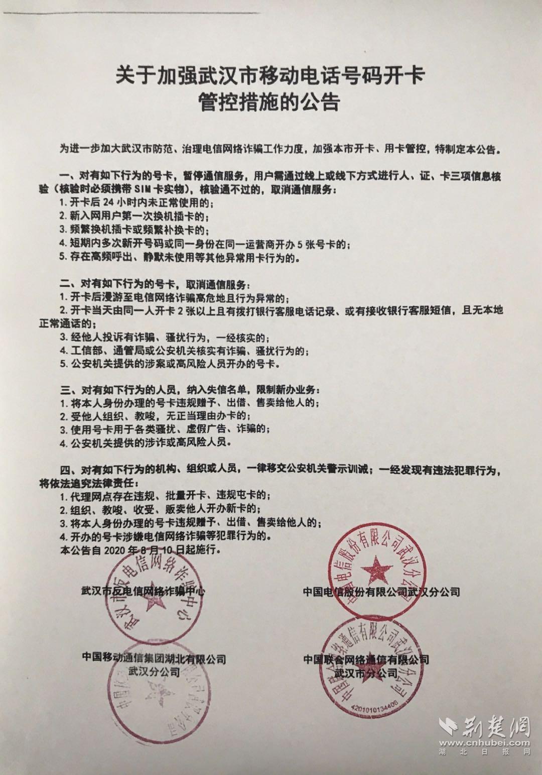 目前,湖北省公安廳正聯合通信運營商在全省推廣移動電話號碼開卡管控措施,全省各地公安機關將陸續發布相關公告,全力推動該管控工作落實落地。