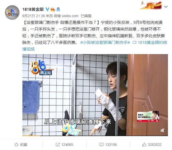據悉,9月22日,某媒體報道了寧波的小張在浴室里被玻璃門割傷雙手的事,因小張顏值出眾,該事件迅速登上熱搜榜第一,一時間有幾千萬的網友幫小張維權,小張本人也誤打誤撞成為了網紅,漲粉20萬。