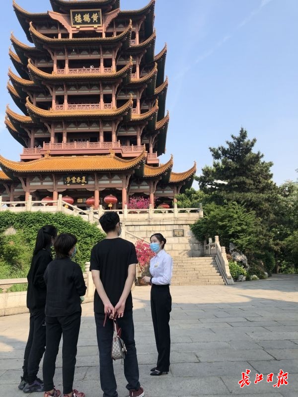 4月29日,黃鶴樓恢復開放,“從園區開放,景區免票以來,每天2.5萬的限流都是滿的,大部分都是外地游客,黃鶴樓是大家必游之地?!瓣愋》几嬖V記者,每當她為游客進行講解的時候,除了景區之外,還會介紹武漢其它好玩的、好吃的地方。