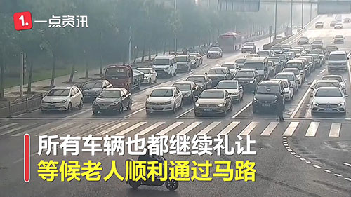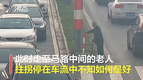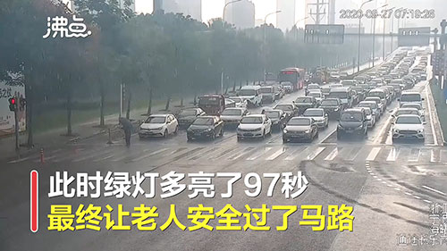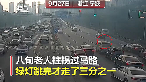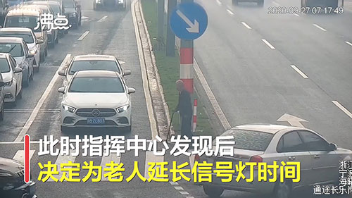 27日,寧波正值早高峰,一位年近八旬的老人拄著拐杖過馬路,綠燈跳完老人才走了三分之一。指揮中心看到后,特意為老人延長了綠燈時間。民警介紹,雖然周邊信號燈也需適當調節,不過對交通影響不大,相信所有司乘人員都會支持。