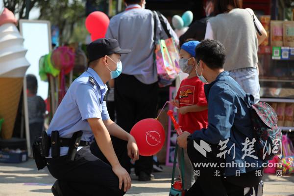 當天,位于蔡甸區大集街的花博匯景點迎來3萬余名游客。蔡甸分局增派近100名警力,全力保障景區安全暢通。大集街派出所副所長燕占飛帶領9名民警早早來到景點,有序組織游客按順序購票。一名群眾報警稱,景區一個垃圾桶冒煙。燕占飛隨即趕到現場,將桶內火星用水澆滅。