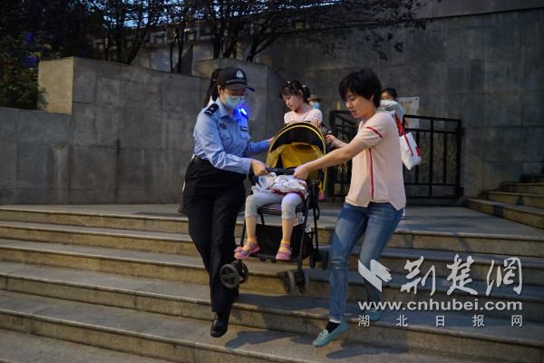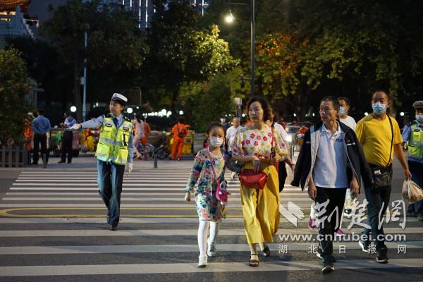 漢口江灘,人流車流繁忙,民警在斑馬線上值守(通訊員供圖)