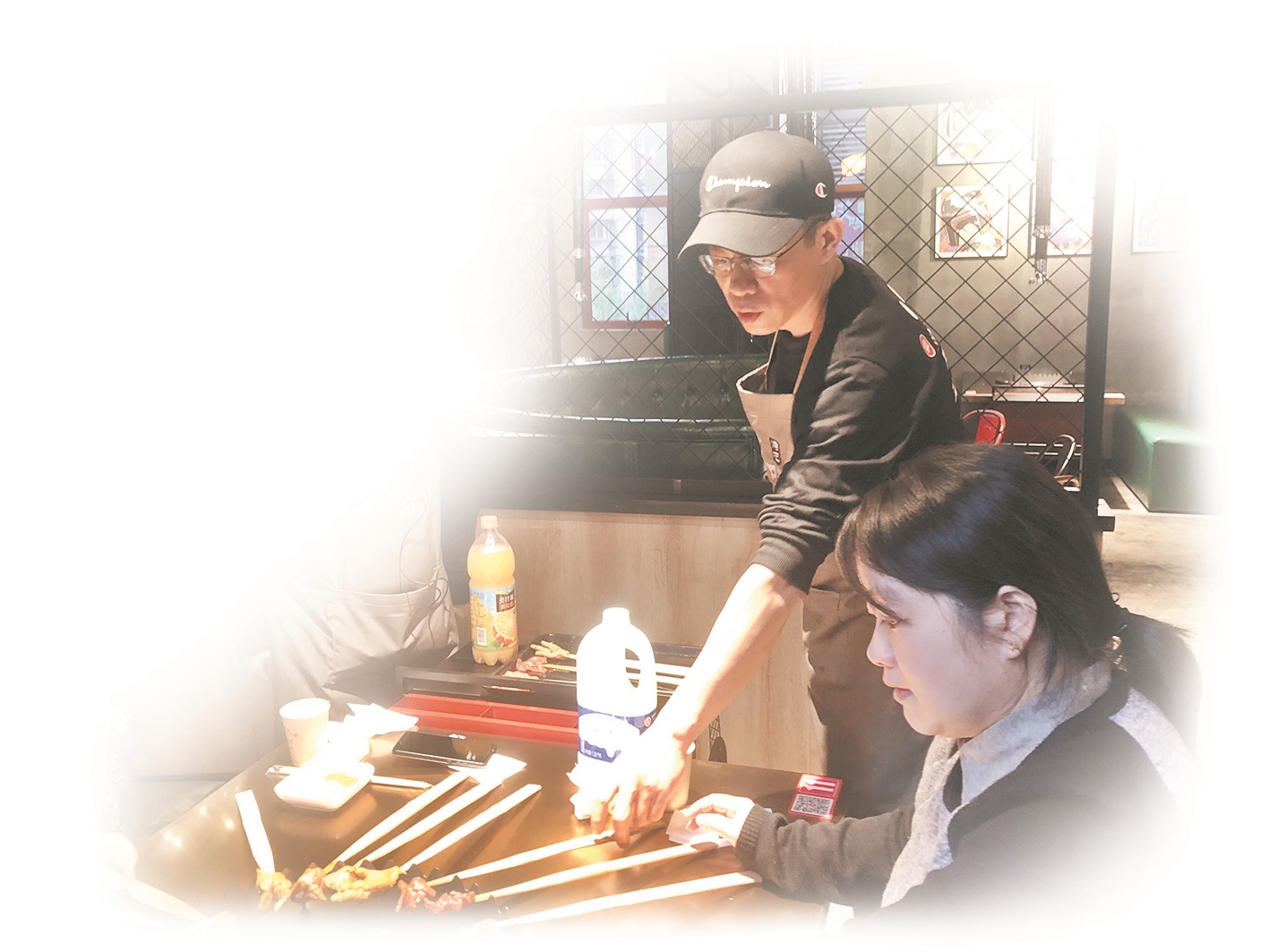 陳俊在自家餐廳為客人服務