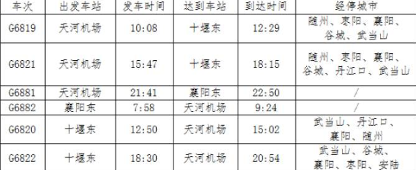 恢復初期,天河機場站每日運行列車車次如下表所示: