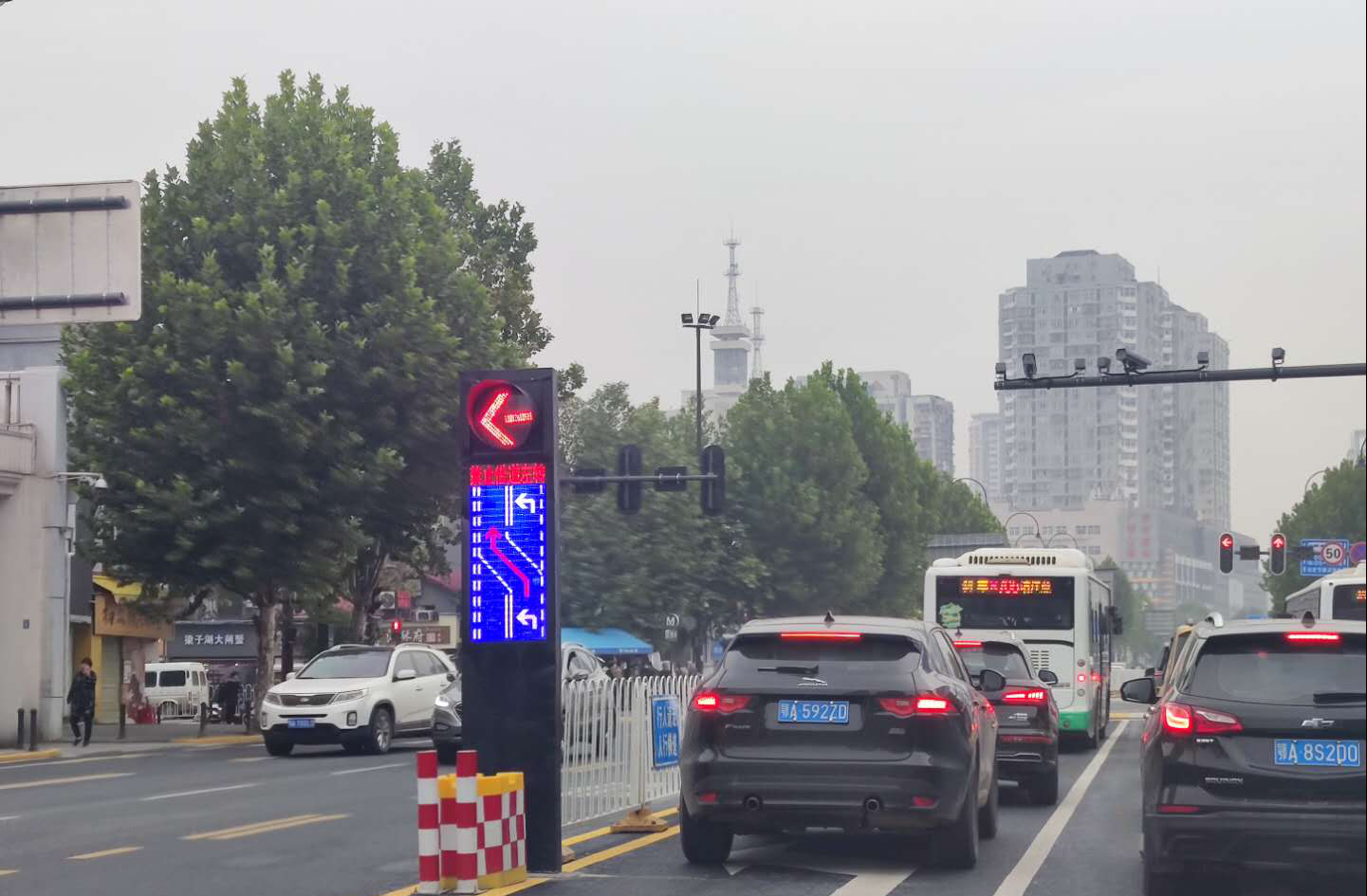 (1)通過設置借道左轉、壓縮路口空間,提升路口通行效率,中山大道擁堵延時指數均下降8%,排隊長度下降10%左右。