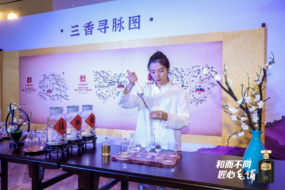 在活動現場,主辦方還邀約觀眾品鑒次高端新品---毛鋪年份匠蕎,亦為毛鋪“和文化”的匠心之作。其博采貴州茅臺鎮醬香、四川宜賓濃香、湖北黃石清香之眾長,通過濃、清、醬三香地標原酒黃金配比,融合多種道地原料之特性,匠心調配,醞釀出毛鋪所獨具的三香合一。