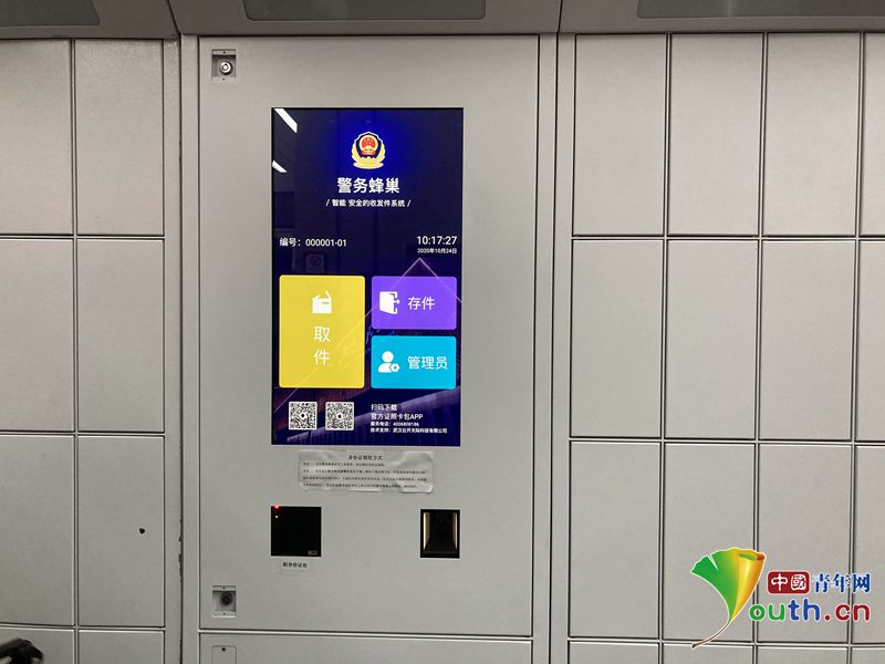 警務蜂巢(智能收發件柜)。辦事群眾可線上下單,證照投放至警務蜂巢后,自動通過證照卡包APP推送取件信息,取件時需使用證照卡包APP掃描警務蜂巢取件二維碼,活體人臉比對檢測通過后,打開相應柜門取件,確保本人領取,警務蜂巢有效緩解窗口壓力,為提供市民安全便捷的自助收發件服務。 何洌 攝