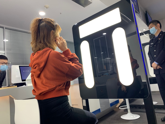 出入境中國公民智慧服務大廳里正在拍攝智能證件照的居民 新華網 谷雨 攝