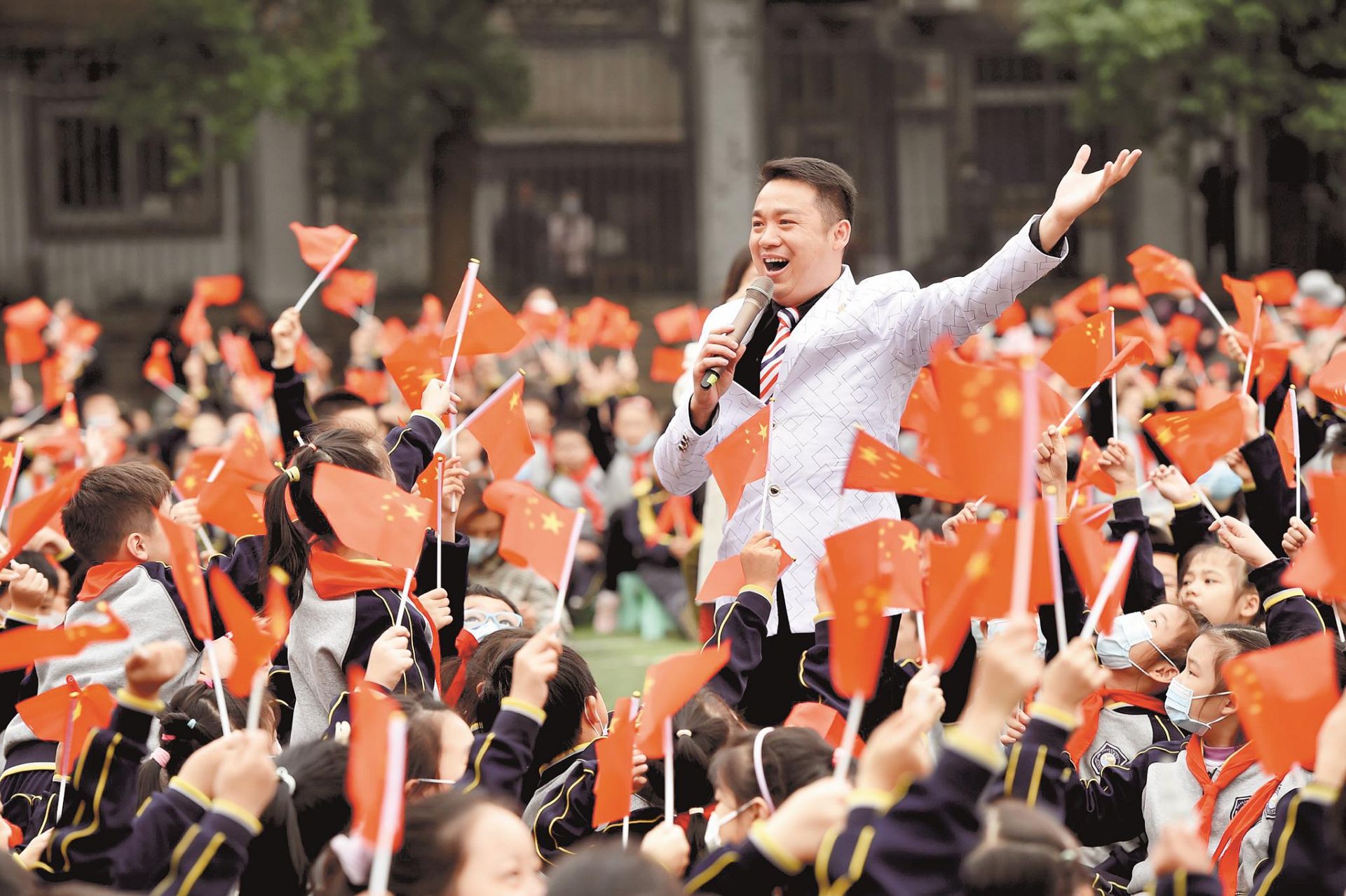 10月28日,荊楚“紅色文藝輕騎兵”走進湖北省武昌水果湖第二小學,操場上紅旗搖曳,1700余名學生歡笑聲不斷。據悉,荊楚“紅色文藝輕騎兵”精心組織,下半年將帶動全省專業(yè)文藝院團送出近1萬場惠民演出。(湖北日報全媒記者 李溪 攝)