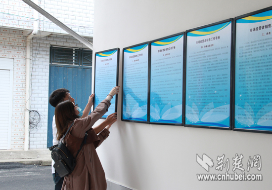 項(xiàng)目團(tuán)隊(duì)走進(jìn)試點(diǎn)農(nóng)貿(mào)市場(chǎng)進(jìn)行“制度上墻”。記者張城攝