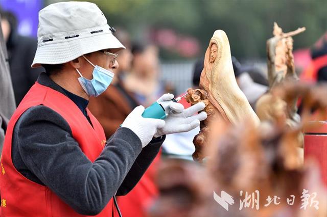10月30日,參賽選手在保康縣首屆職業(yè)技能大賽總決賽現(xiàn)場進(jìn)行雕刻比賽。