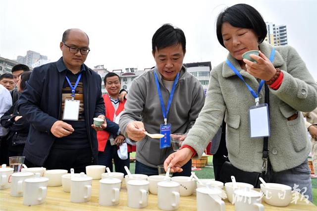 10月30日,評委對制茶比賽選手的成品茶進(jìn)行綜合評定。
