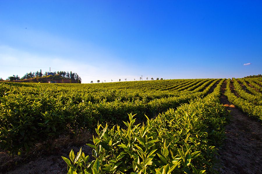漫步九井峰茶文化品賞園,一排排整齊的茶樹,依隨著山勢綿延起伏,在視線的盡頭與青山、藍天交匯融合,似乎將群山與天空也染綠一般,天地之間渾然一色。騎行道、觀光步道等為茶園勾勒出線條,桂花、紫薇等植物成為天然“圍墻”為茶園分區。置身其中,空氣帶著茶的清香鉆進汗毛孔,身心都被舒適地浸潤著,有一種醉氧的感覺。