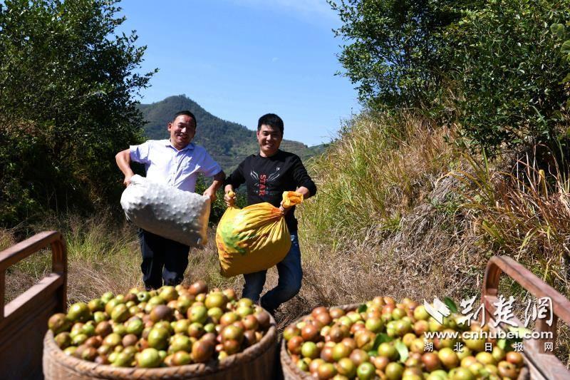深秋季節,通城縣油茶基地,茶農們在采摘茶果。通訊員供圖