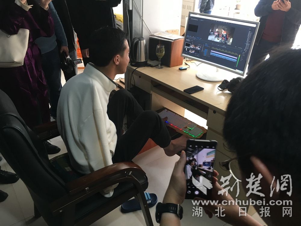10月21日,巴東無臂少年陳茲方在電腦前用腳剪視頻,如果沒人干擾,他一分鐘還能回復網友50個字。“陳茲方鋪子”在他的腳下已成全國知名網店,不僅自己靠此脫貧,附近村民也靠陳茲方的IP脫貧。