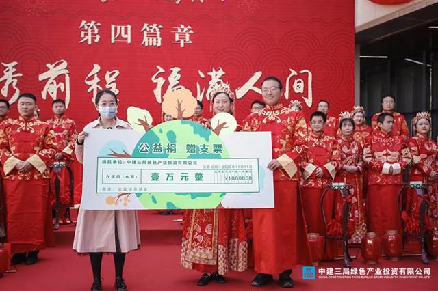 在這段時間里,數(shù)對原定于年初結(jié)婚的青年,第一時間參與到疫情防控及復工復產(chǎn)阻擊戰(zhàn)中,勇?lián)姑蔑@央企擔當。眼看著復工復產(chǎn)工作全面開啟,而他們的婚期卻一次又一次延期,于是,中建三局綠投公司工會決定組織一場溫馨的集體婚禮。