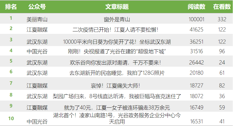 表2:10月微信文章閱讀量前十排行榜