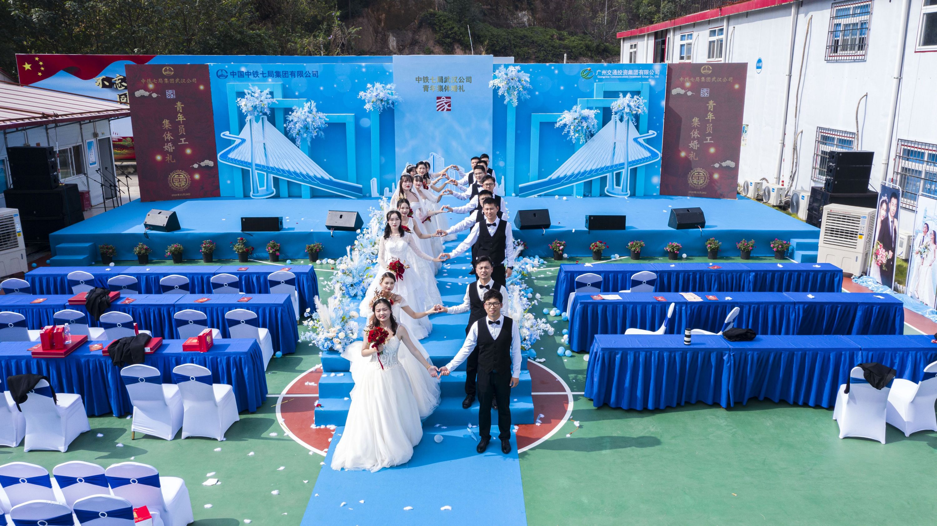 長江網11月20日訊(記者陶常寧 通訊員郭強)11月20日,一場集體婚禮在中鐵七局武漢公司廣州機場二通道項目部隆重舉行。來自中鐵七局武漢公司機場二通道、宜彝高速、武九管廊、武漢地鐵19號線等項目部的9對一線新人參加集體婚禮。