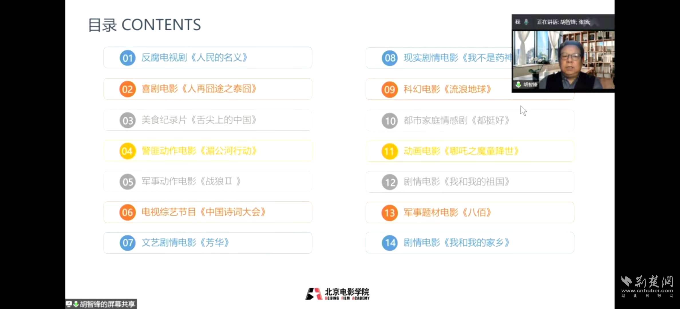 荊楚網客戶端—荊楚網消息(記者張揚)11月20日,北京電影學院副校長胡智鋒做客“荊楚文藝名家講堂”(第八期),講述他關于《近年來中國現象級影視作品觀察與思考》。講堂由荊楚網連線直播,吸引6萬余網友圍觀。