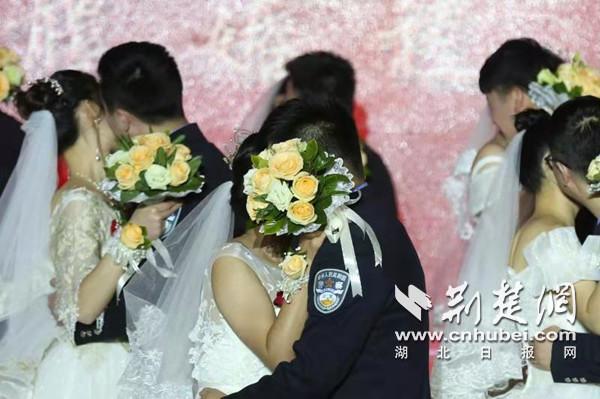 參加這次集體婚禮的38對新人來自武漢市公安局的各個不同單位。他們中,有威武勇猛的特警、機智勇敢的刑警,有風雨無阻的交警,也有熱心服務的片警;他們中,有一起在抗疫一線拼命的警醫夫妻,也有同在警營的雙警夫妻。