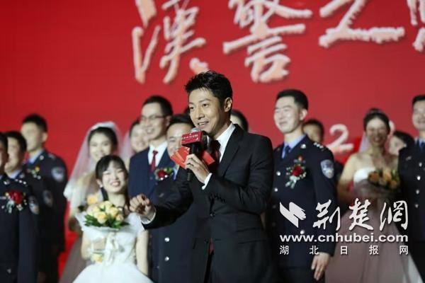 擔任這次婚禮主持的是來自中央電視臺的著名主持人撒貝寧。他對家鄉的公安民警們非常有感情,這已是他第三次為漢警集體婚禮做主持人了。