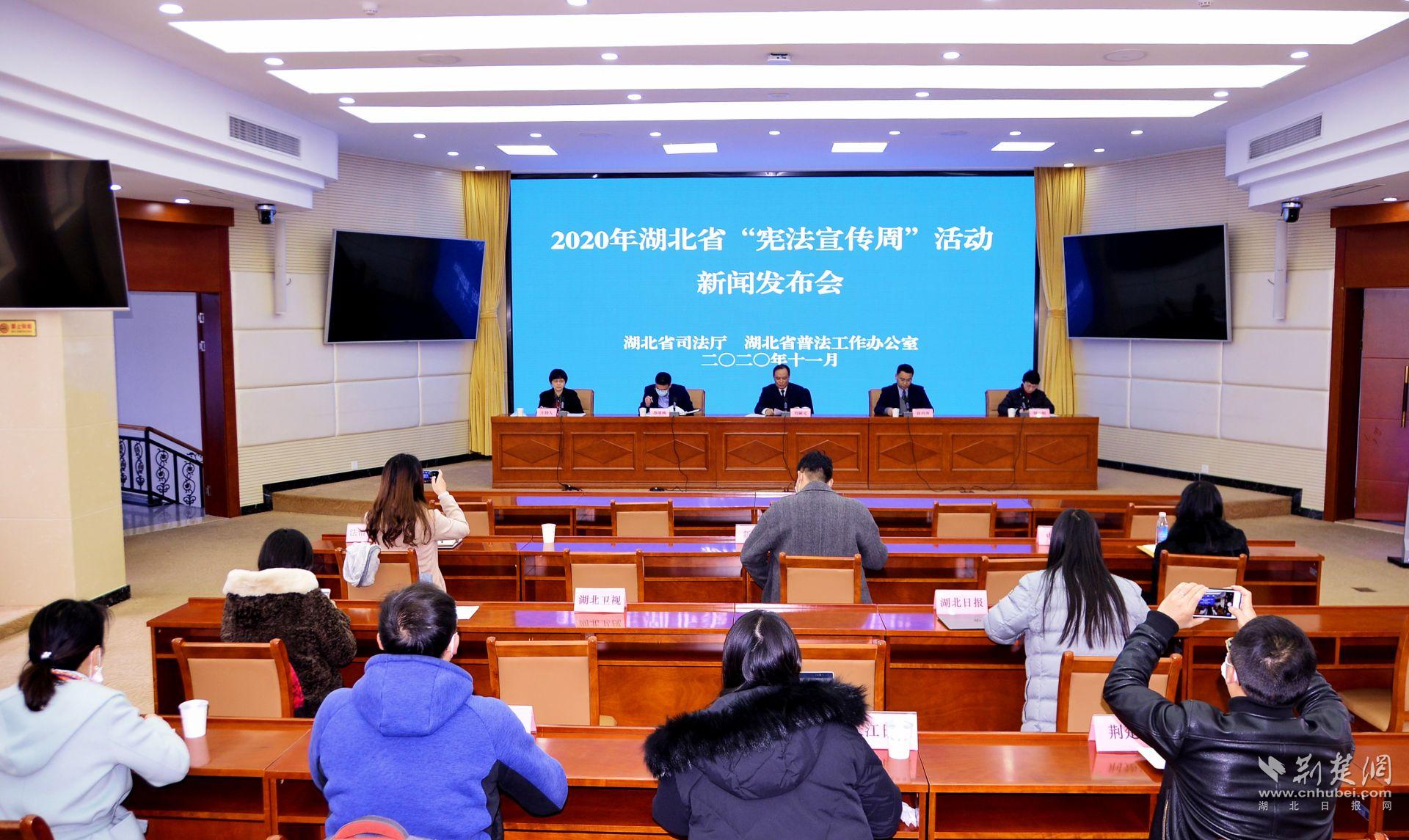 荊楚網客戶端—荊楚網消息(記者邱玲鵬 通訊員顧丹)11月27日上午,湖北省司法廳、省普法辦舉行2020年全省“憲法宣傳周”活動新聞發布會,發布“憲法宣傳周”活動安排以及全省普法依法治理工作的相關情況。