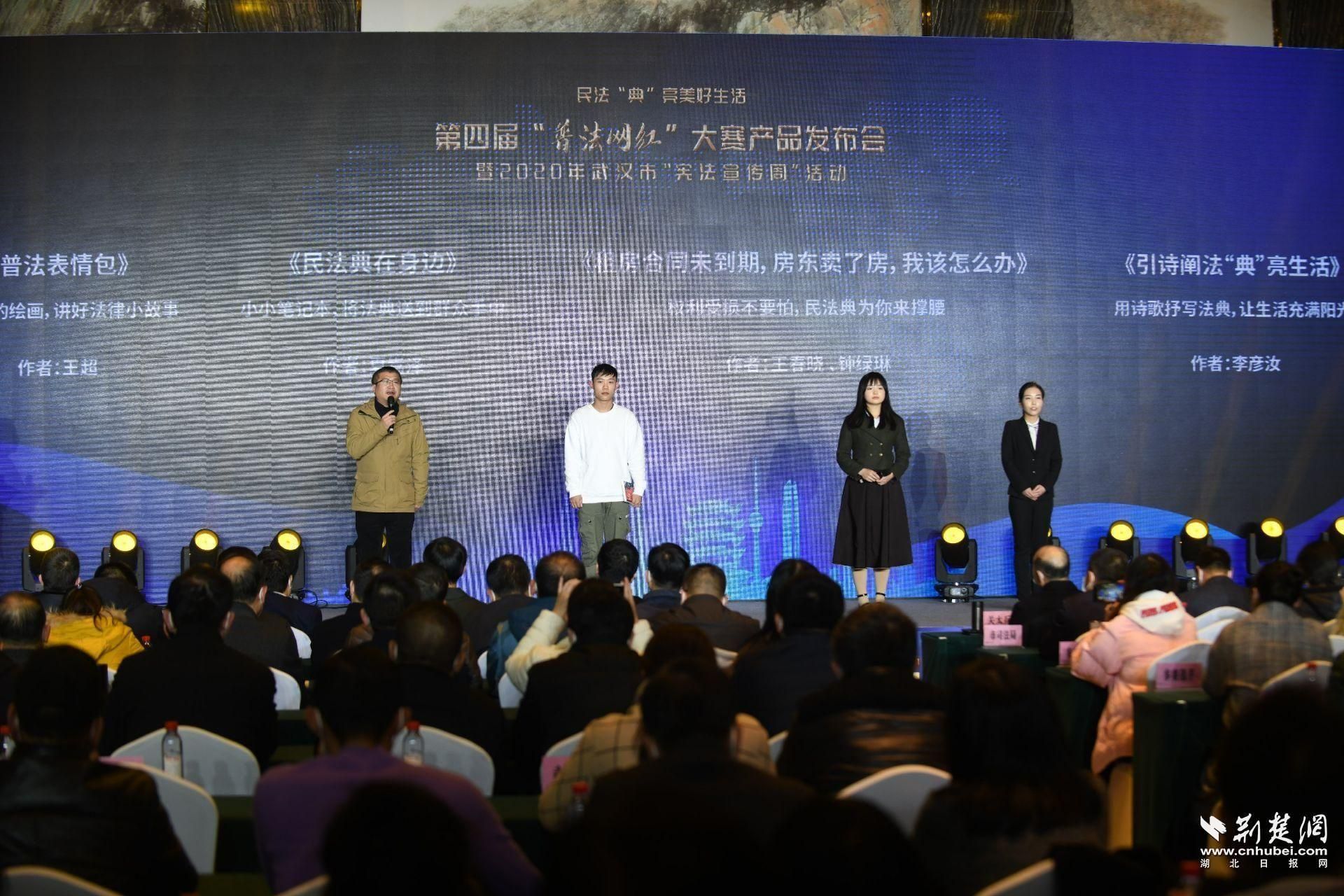 荊楚網客戶端一荊楚網消息(記者肖慧婷 通訊員吳靜)12月1日,第四屆“普法網紅”大賽產品發布會正式召開,這也是武漢市首次召開普法產品發布會。現場,畫漫畫、表演短劇、硬核說唱......來自基層的新一屆“普法網紅”們各個都身懷“絕技”,用豐富多彩的形式宣傳民法典。