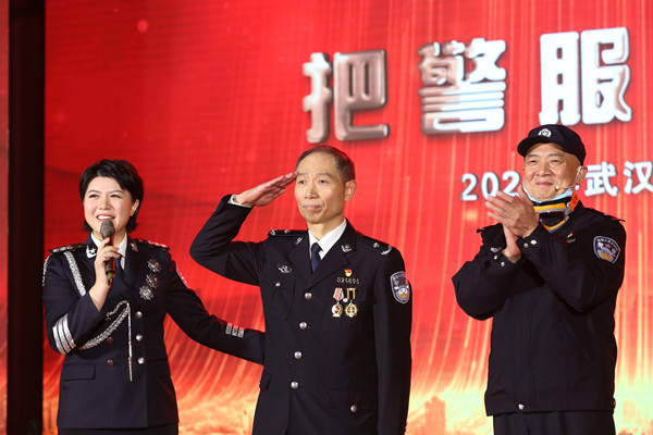 熱烈的掌聲中,10位榮休民警代表肩披綬帶登場,武漢市委常委、市公安局局長李義龍上臺向他們頒發(fā)“榮休紀(jì)念章”。儀式在全場激昂的《中國人民警察警歌》中結(jié)束。