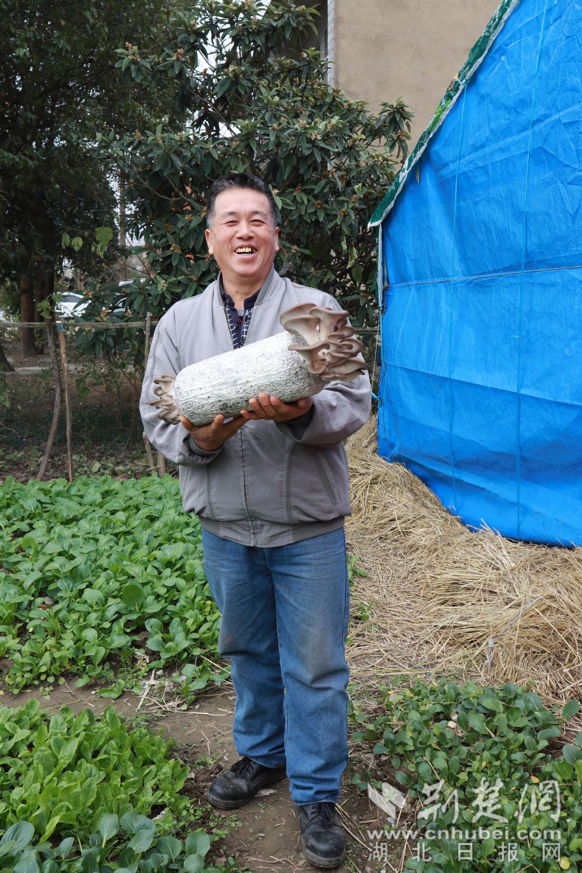 種植蘑菇有收入,丁咬橋笑得合不攏嘴。魯偉龍攝