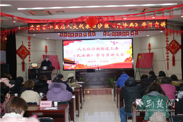 荊楚網客戶端—荊楚網消息(記者李燕 通訊員謝程)12月18日,武昌區人大白沙洲街工委組織人大代表開展《民法典》宣講活動,12個社區副主任、民政委員、居民代表、街道工作人員約70人參與本次活動。