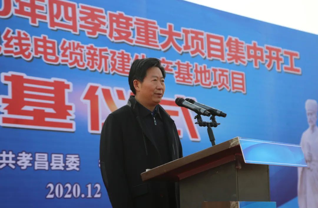 (通訊員 曾凡軍 董維文)12月22日,孝昌舉行2020年四季度重大項目集中開工暨湖北恒晟電線電纜新建生產基地項目奠基儀式活動。孝感市政協主席仇平貴,孝感市人大常委會副主任、孝昌縣委書記吳瓊出席開工儀式。