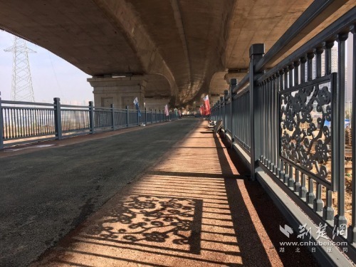 “我們在高架橋下修建了一條420米長的湖中人行景觀橋,上層行車,下層行人。這是武漢市唯一一座建設在高架橋梁底下的人行天橋,在保證交通通暢同時,方便市民欣賞龍陽湖的景觀。”中交二航局項目負責人羅柳介紹。