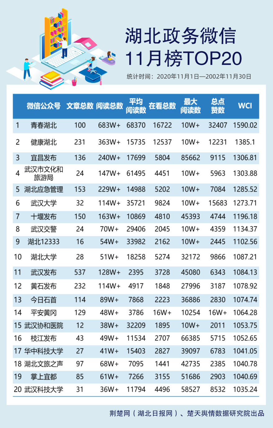 12月23日,由荊楚網(湖北日報網)、楚天輿情數據研究院制作的湖北政務微信11月榜發布。