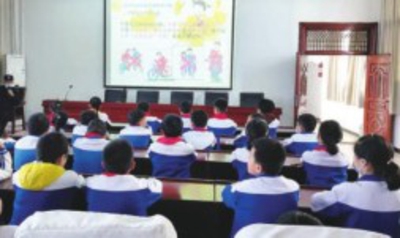 下沉黨員劉剛發(fā)揮自身工作特點到車站中心小學(xué)開展交通安全知識講座。