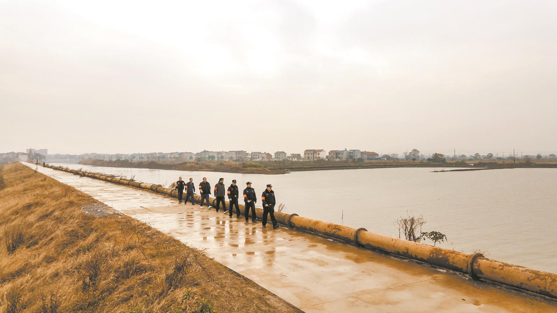 江面有人巡邏,沿線布有暗哨,固定監控24小時在線,動態無人機不時巡查……省公安廳有關負責人介紹,“人力+科技”的巡查組合拳,讓千里江堤的巡邏防控更加立體。