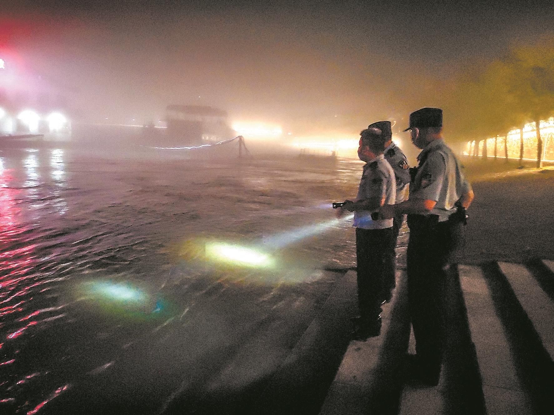宜都市公安局民警夜巡長江 通訊員陳婭君攝