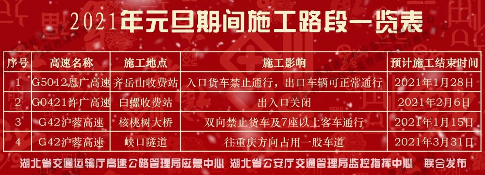 2021年元旦期間施工路段一覽表