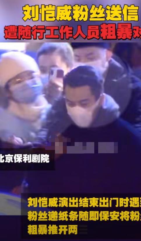 在網曝的視頻中可以看到,劉愷威當日頭戴白色針織帽,身穿藍色羽絨服,并且戴了眼鏡和口罩的女粉絲給劉愷威遞信之類的東西,但女粉絲卻被劉愷威的保安用非常大幅度的動作推開,看上去非常粗暴。而劉愷威的表情卻十分淡定,沒有什么太大的反應。