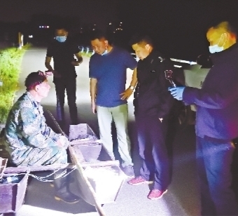民警夜晚沿江巡控。