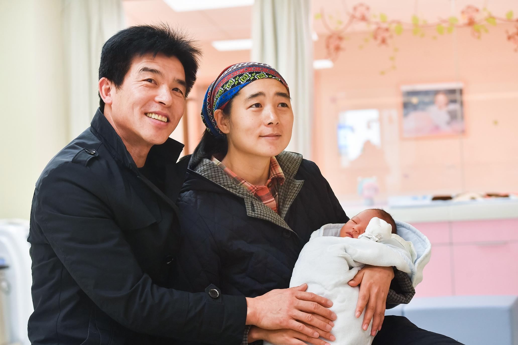 昨日上午,在泰康同濟母嬰康育中心,抱著心愛的兒子,幸福的笑容蕩漾在柏劍夫婦臉上。
