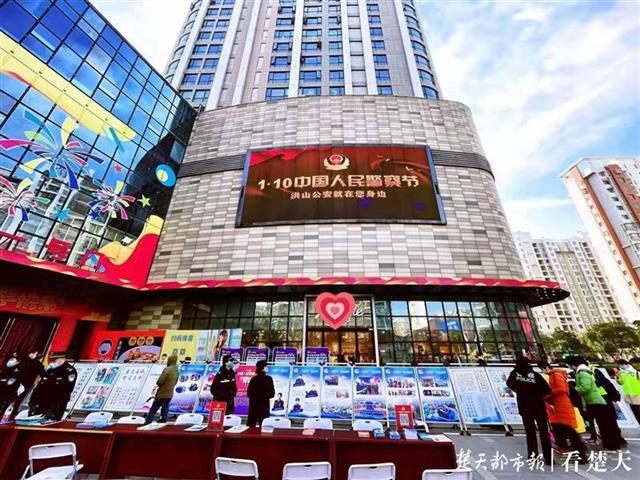楚天都市報1月9日訊(記者葉文波 通訊員劉桑萍 羅維舟 實習生劉錫文 馮佩瑤 陳肖依)為迎接即將到來的2021年1月10日首個中國人民警察節。9日上午,武漢市公安局洪山區分局在維佳佰港城廣場隆重舉行“洪山公安就在您身邊”警察節戶外宣傳活動。