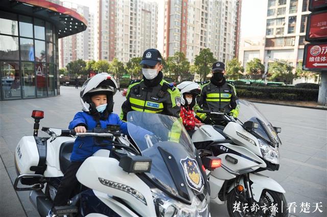 洪山區交通大隊四名“漢警快騎”隊員身著醒目的制式騎行服,躍上威武的警用摩托,在廣場上進行了隊列表演,將活動現場的氣氛推向“小高潮”。騎警隊員們變換隊形,時而呈方陣,時而呈扇形,精湛炫酷的車技引發陣陣贊嘆。表演結束后,小朋友們在騎警的幫助下紛紛騎上摩托車,與騎警們合影留念。