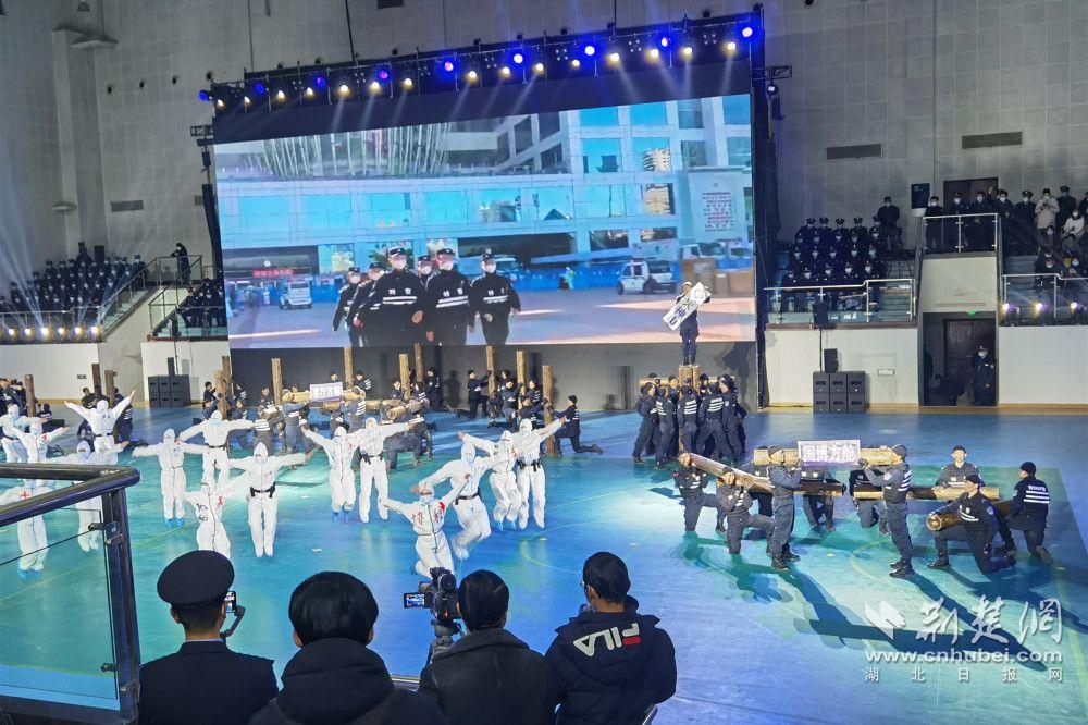 演練再現(xiàn)了波瀾壯闊的戰(zhàn)疫歷程和感人肺腑的難忘瞬間,再現(xiàn)了4萬(wàn)漢警義無(wú)反顧、舍生忘死地投入武漢保衛(wèi)戰(zhàn),用汗水、鮮血和生命筑起鋼鐵長(zhǎng)城的“漢警力量”。