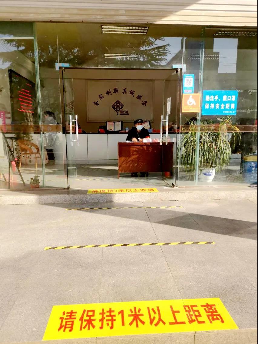 于微細處顯真干,全面升級各項防控措施,首先就是要守好自家門。鐘樓社區在辦公大樓入口處安排人員輪班全天值守,居民群眾進入鐘樓社區服務大廳辦事,值守黨員會提示居民進行掃碼,戴口罩,體溫檢測正常后才能進入,嚴格按照標識保持1米的安全距離有序進出。