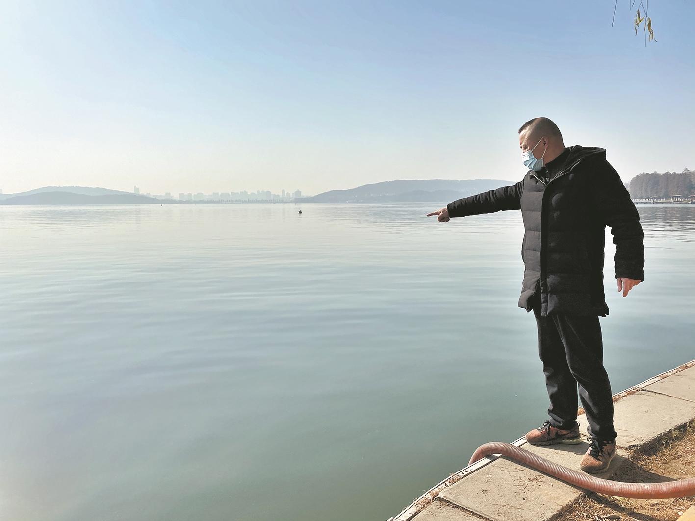東湖冬泳隊(duì)隊(duì)員曹愛軍告訴極目新聞?dòng)浾撸蛉赵缟?時(shí)許,他在東湖邊散步,走到東湖風(fēng)景區(qū)湖濱客舍附近一處崗?fù)み厱r(shí),發(fā)現(xiàn)水面有一處黑影。他上前查看,發(fā)現(xiàn)是一名仰面浮在水面的男子,肩部以下都泡在水里,看起來無法動(dòng)彈。