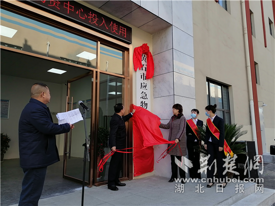 現(xiàn)場(chǎng)領(lǐng)導(dǎo)為黃石市應(yīng)急物資儲(chǔ)備中心揭牌。通訊員供圖