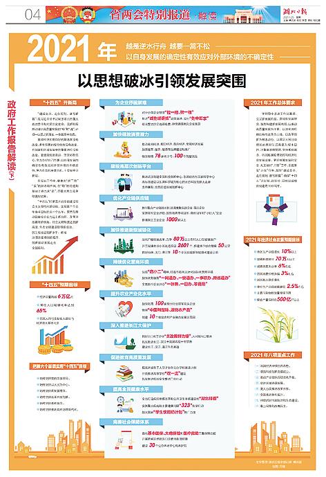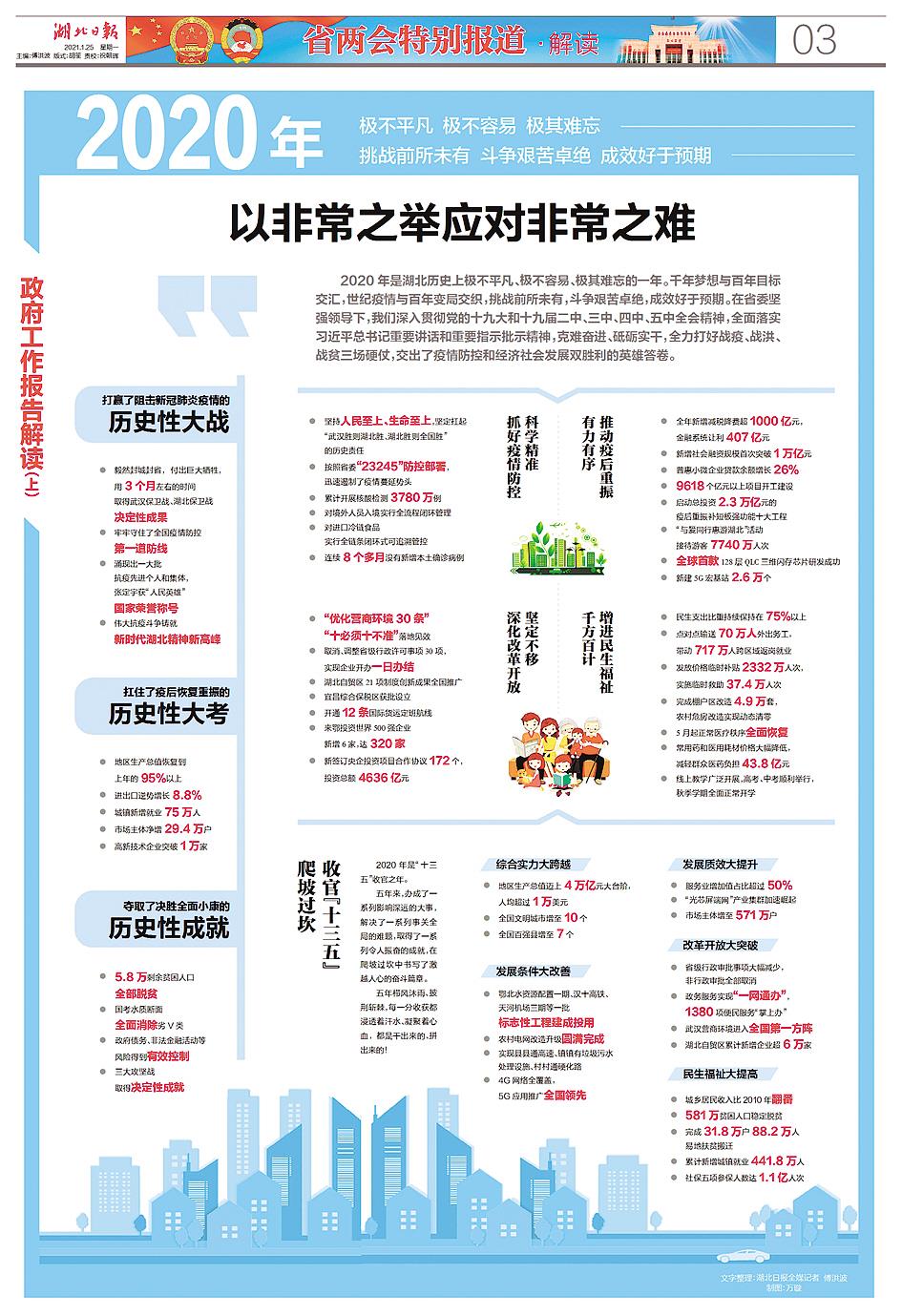 1月25日,湖北日報圍繞《政府工作報告》進行兩個整版的圖解解讀,通過形式多樣的圖表、圖示,將報告內容生動呈現。