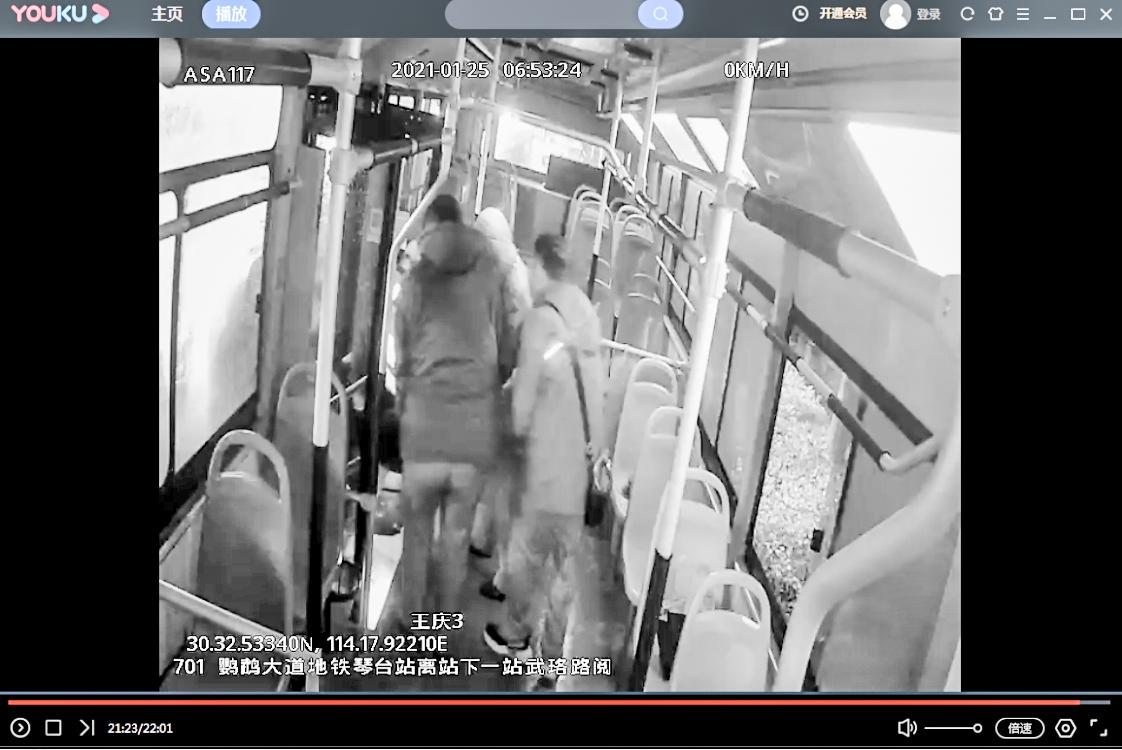 下橋后,6時37分,王慶在武漢市第三醫院門診大門前停車,查看暈倒乘客的情況。車上其他乘客主動上前幫忙,一名女乘客將她的包墊在暈倒女子頭部下方。在大家的呼喚下,這名女子醒了過來,不過渾身無力。乘客魏先生趕緊問她“電話在哪里”,好幫她聯系家人。清醒過來的她還是不能動,只能用手比劃,魏先生明白過來,從她包里拿出手機,又根據她的比劃,輸入手機密碼解鎖。從最近聯系人中,找到她女兒的電話打過去,魏先生說:“電話的主人現在暈倒了,在三醫院附近,你趕緊來。”