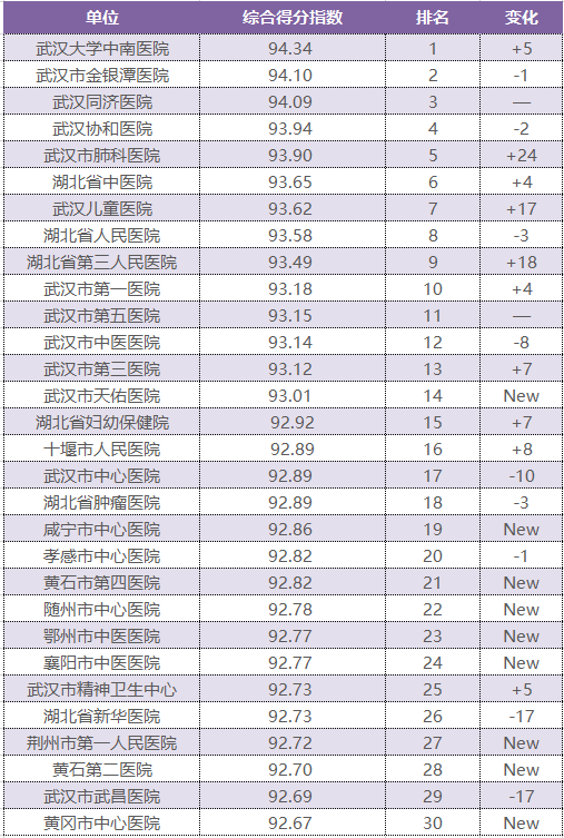 1月29日,由荊楚網(湖北日報網)、楚天輿情數據研究院制作的湖北醫院傳播指數榜第8期發布。本期,武漢大學中南醫院以94.34首次登頂榜首,武漢金銀潭醫院、武漢同濟醫院以94.1和94.09分列二、三名。